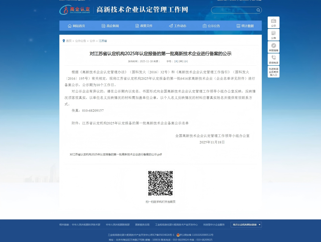 近日,國家高新技術(shù)企業(yè)認(rèn)定管理工作網(wǎng)公示了江蘇省認(rèn)定機(jī)構(gòu) 2025 年認(rèn)定報備的第一批高新技術(shù)企業(yè)備案名單。歷經(jīng)層層嚴(yán)格評審,江蘇京源環(huán)保股份有限公司憑借在工業(yè)水處理領(lǐng)域的硬核技術(shù)實力、持續(xù)迭代的創(chuàng)新能力與全產(chǎn)業(yè)鏈服務(wù)優(yōu)勢,時隔三年再次通過高新技術(shù)企業(yè)認(rèn)定!